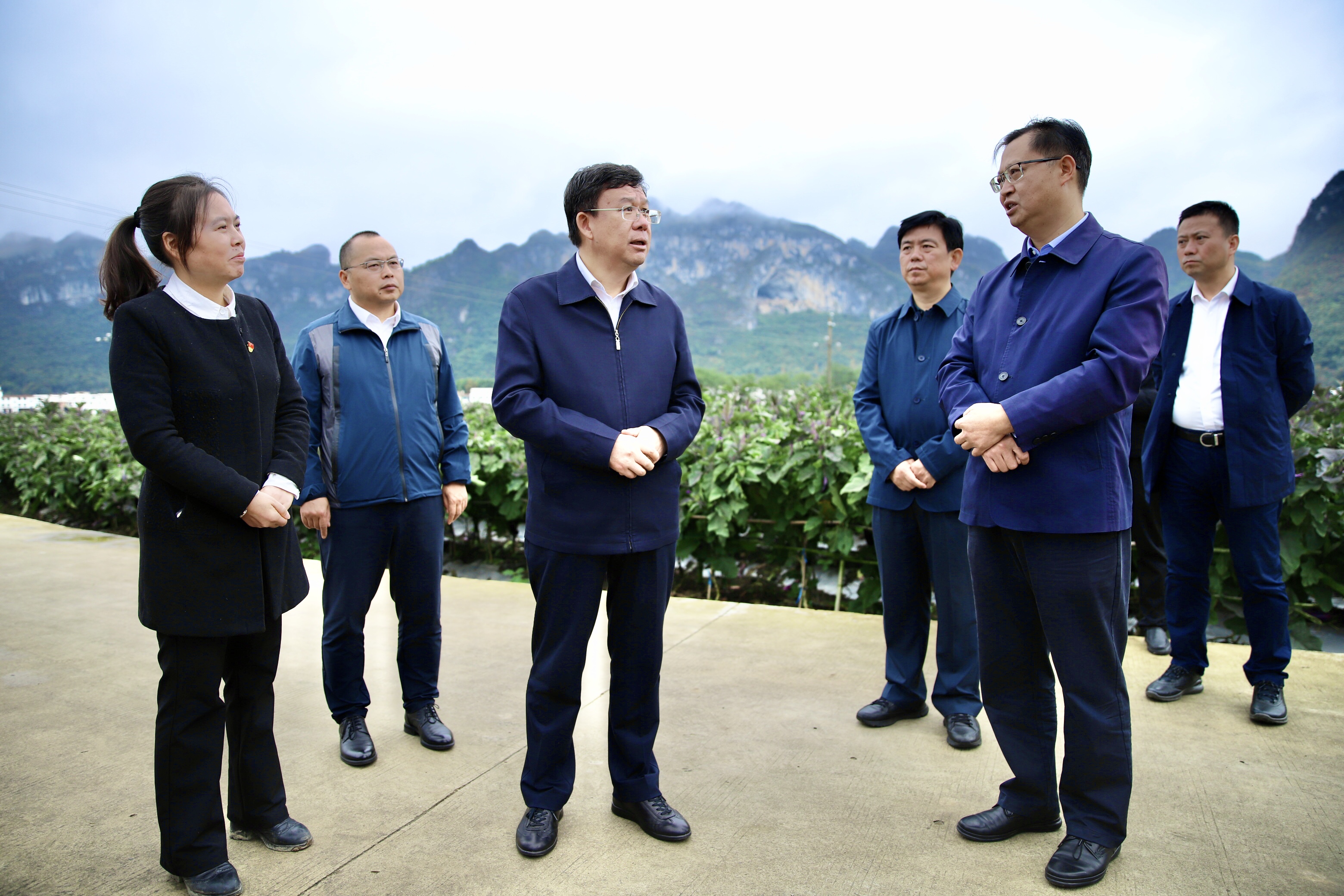 夏红民在平塘县者密镇六硐坝区蔬菜(茄子)种植基地调研。(黔南州纪委监委供图)