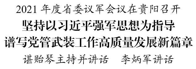 11月23日,2021年度省委议军会议在贵阳召开。会议强调,要深入贯彻习近平强军思想,认真学习贯彻党的十九届六中全会精神,深刻把握“两个确立”、坚决做到“两个维护”,贯彻军委主席负责制,切实扛起党管武装政治责任,谱写新时代贵州党管武装工作高质量发展新篇章。