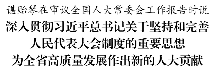 谌贻琴说,去年党中央首次召开了人大工作会议,出台了关于新时代坚持和完善人民代表大会制度、加强和改进人大工作的意见,在我国社会主义民主政治建设进程中具有划时代、里程碑的深远影响。一年来,全国人大及其常委会坚定不移拥护“两个确立”、做到“两个维护”,旗帜鲜明坚持党的全面领导这一最高政治原则,党中央有部署、总书记有指示,人大就有担当、有行动,充分彰显了坚如磐石的政治定力。坚定不移捍卫国家核心利益,只要党、国家和人民需要,人大就毫不犹豫站到一线进行法律的、政治的、外交的斗争,扛起应尽的政治责任,充分彰显了依法履职的斗争能力。坚定不移发展全过程人民民主,大力推动人民当家作主真实、生动、具体地体现在人大工作各方面各环节全过程,丰富和拓展了全过程人民民主的实践内涵,充分彰显了中国式民主的制度伟力。坚定不移围绕大局担当作为,立法、监督、代表、对外交往、自身建设等各项工作紧扣时代变化、紧跟“国之大者”,在新时代展现了新气象、实现了新作为,充分彰显了与时俱进的时代活力。