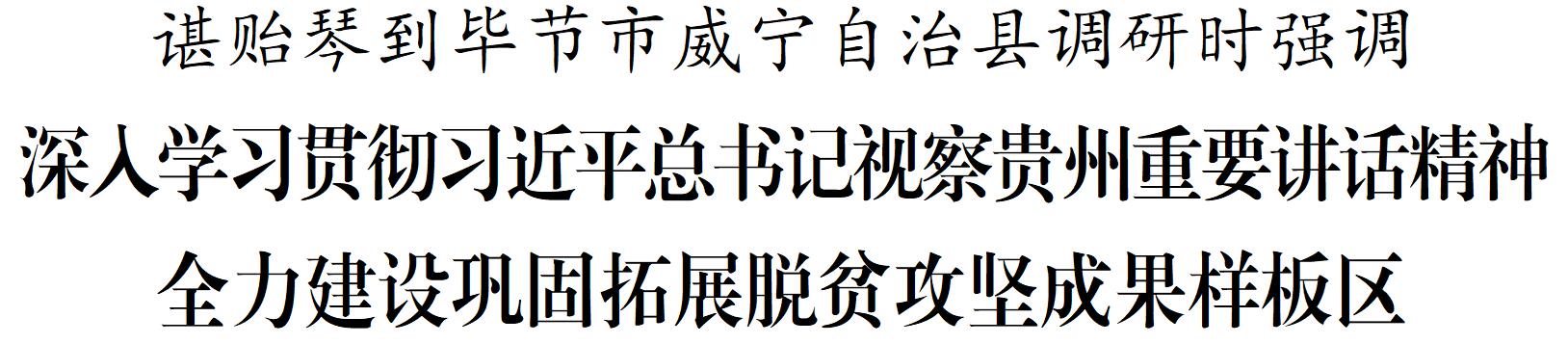 谌贻琴到毕节市威宁自治县调研时强调 深入学习贯彻习近平总书记视察贵州重要讲话精神 全力建设巩固拓展脱贫攻坚成果样板区