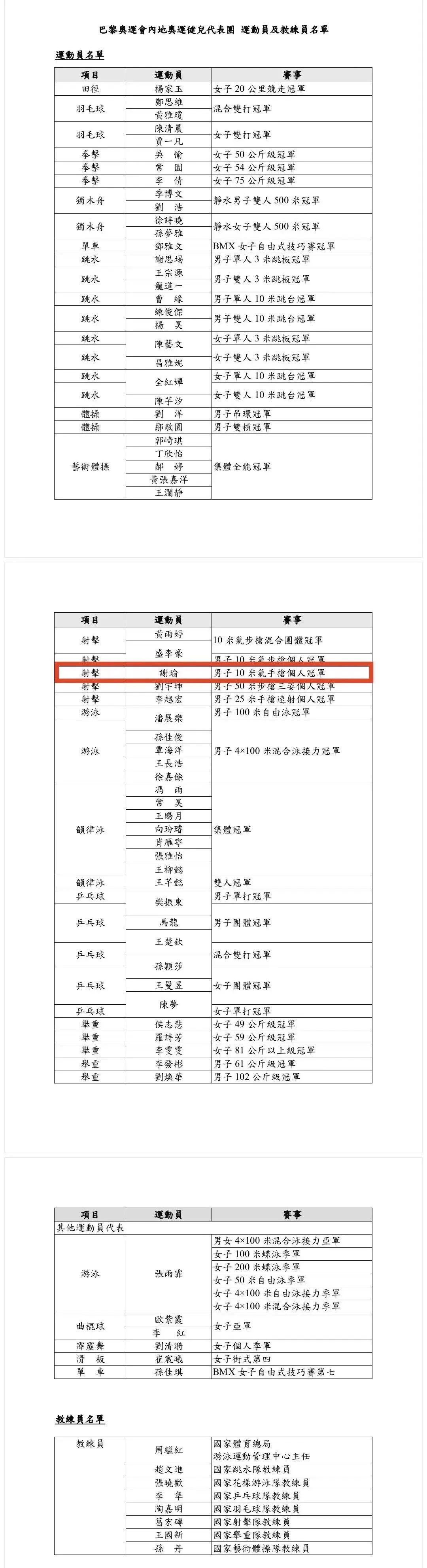 名单公布!谢瑜在列!