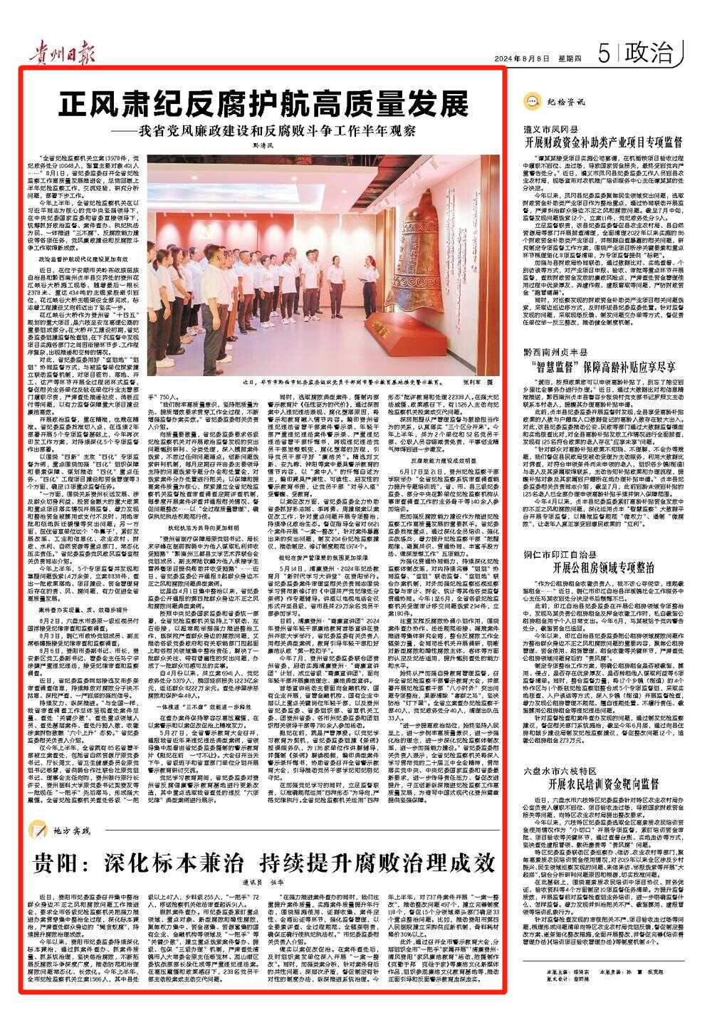 《贵州日报》“党风廉政”专版丨正风肃纪反腐护航高质量发展 ——我省党风廉政建设和反腐败斗争工作半年观察