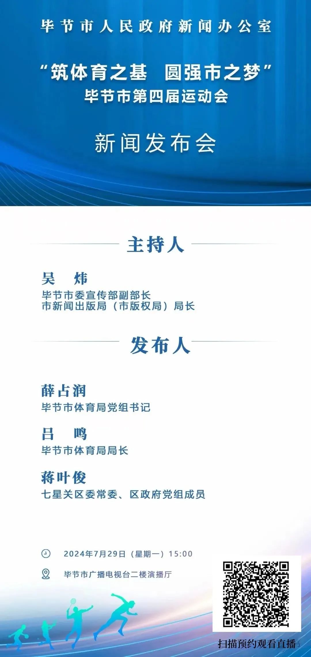 毕节市第四届运动会新闻发布会将于7月29日15:00举行