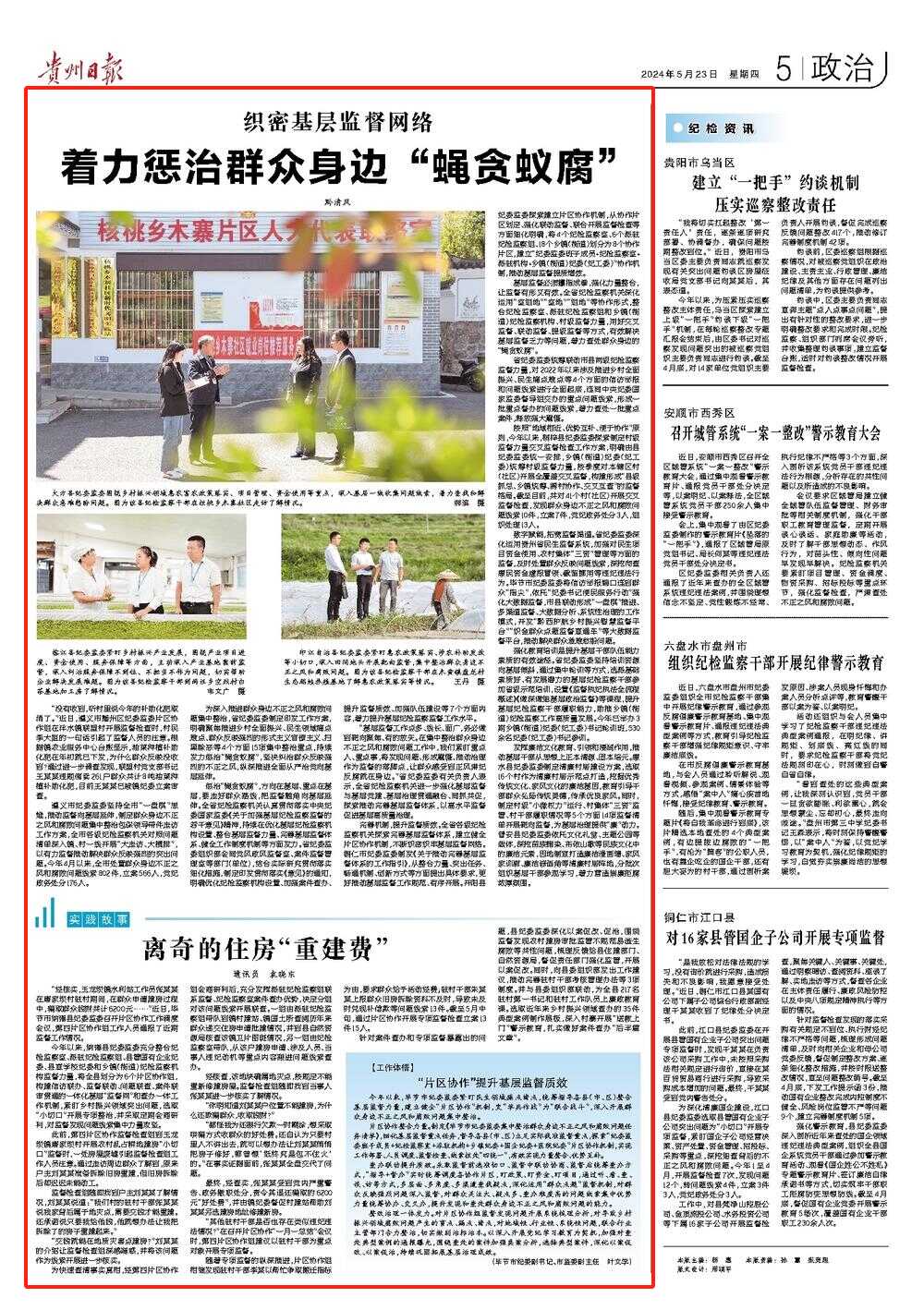 《贵州日报》“党风廉政”专版丨织密基层监督网络 着力惩治群众身边“蝇贪蚁腐”