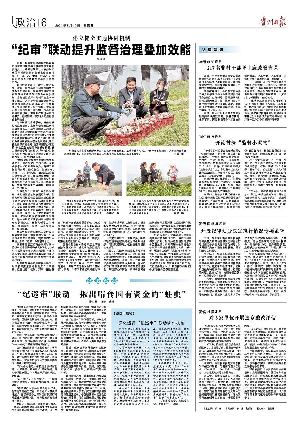 《贵州日报》“党风廉政”专版丨建立健全贯通协同机制 “纪审”联动提升监督治理叠加效能