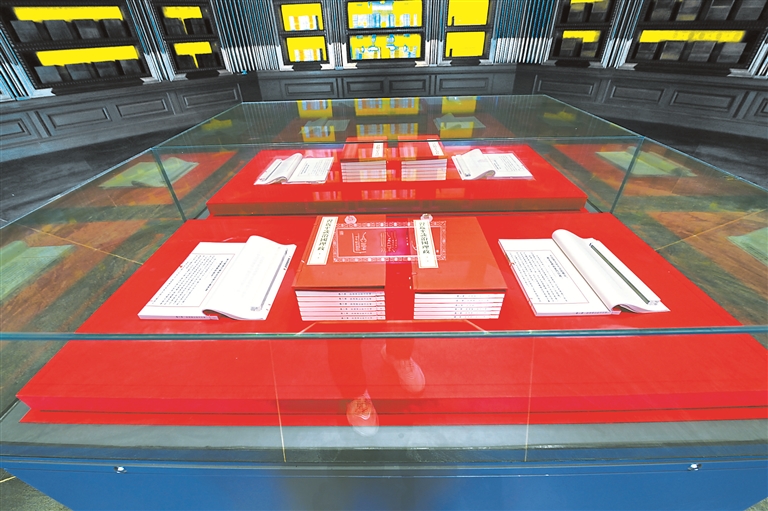 图为在中国国家版本馆中央总馆“真理之光——马克思主义中国化时代化经典版本展”中,展出的《习近平谈治国理政》第一卷至第四卷。(图片来源:人民视觉)