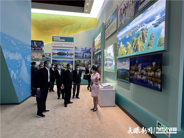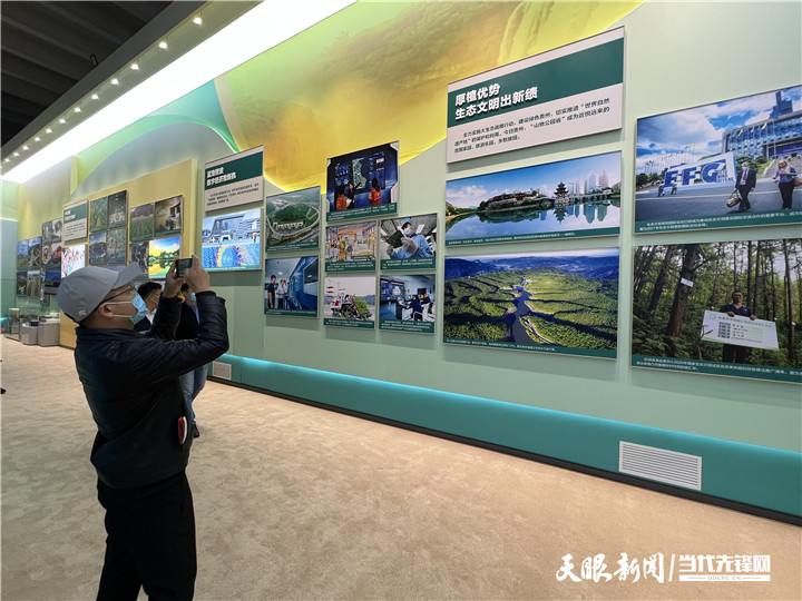 “今年初,新国发2号文件出台,明确贵州建设西部大开发综合改革示范区、巩固拓展脱贫攻坚成果样板区、内陆开放型经济新高地、数字经济发展创新区、生态文明建设先行区的战略定位,对贵州未来发展具有十分重大而深远的意义。”作为一名来自贵州金沙县的干部,石鑫对故土再熟悉不过,一边观展一边将贵州发展娓娓道来。