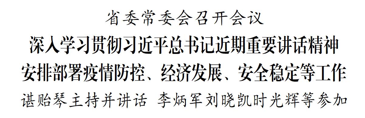 会议强调,全省各地各部门要保持定力、坚定信心,切实担当作为,以更大力度高效统筹疫情防控和经济社会发展,采取有力举措恢复经济,全力稳住经济大盘。要分区分级、科学有序推动复工复产,在确保防疫安全的前提下,加快重点行业、重点产业、重点项目复工复产进度。要着力保障重点产业链供应链稳定,加快打通物流保畅、原材料供应和员工返岗等堵点,确保员工回得来、原料供得上、产品出得去。要充分发挥有效投资的关键作用,谋划储备更多高质量项目,加快推动实施一批新的重大项目,强化资金要素保障,坚决稳住投资基本盘。要切实帮助市场主体纾困解难,各级领导干部要带头服务项目、服务企业,用好“政策找企业、企业找政策”机制,推动助企纾困各项政策措施落地落实。要全力解决民生难题,切实抓好群众就业、基本生活保障等工作。
