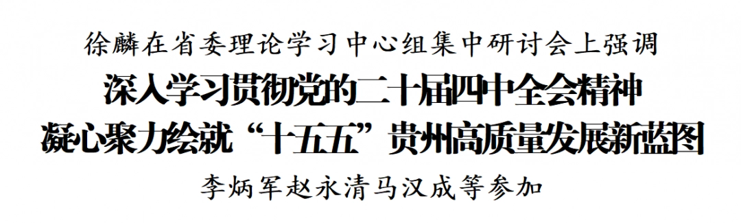 徐麟指出,党的二十届四中全会是在向第二个百年奋斗目标进军的新征程上举行的一次十分重要的会议,时机特别关键、主题格外鲜明、影响极其深远,具有承前启后、领航指向、应变开新的重大意义。要以马克思主义立场观点方法深学细悟党中央对“十五五”的战略擘画,深刻把握守正创新的鲜明品格、解决问题的历史主动、统筹兼顾的系统观念、人民至上的价值取向、居安思危的底线思维。要谋深谋实贵州“十五五”经济社会发展,以战略定力走出一条高质量发展新路,以后发追赶定位确定发展目标,以前瞻思考把握趋势性问题,以项目谋划支撑重大举措,以高质量党建引领高质量发展,奋力在中国式现代化进程中展现贵州新风采。