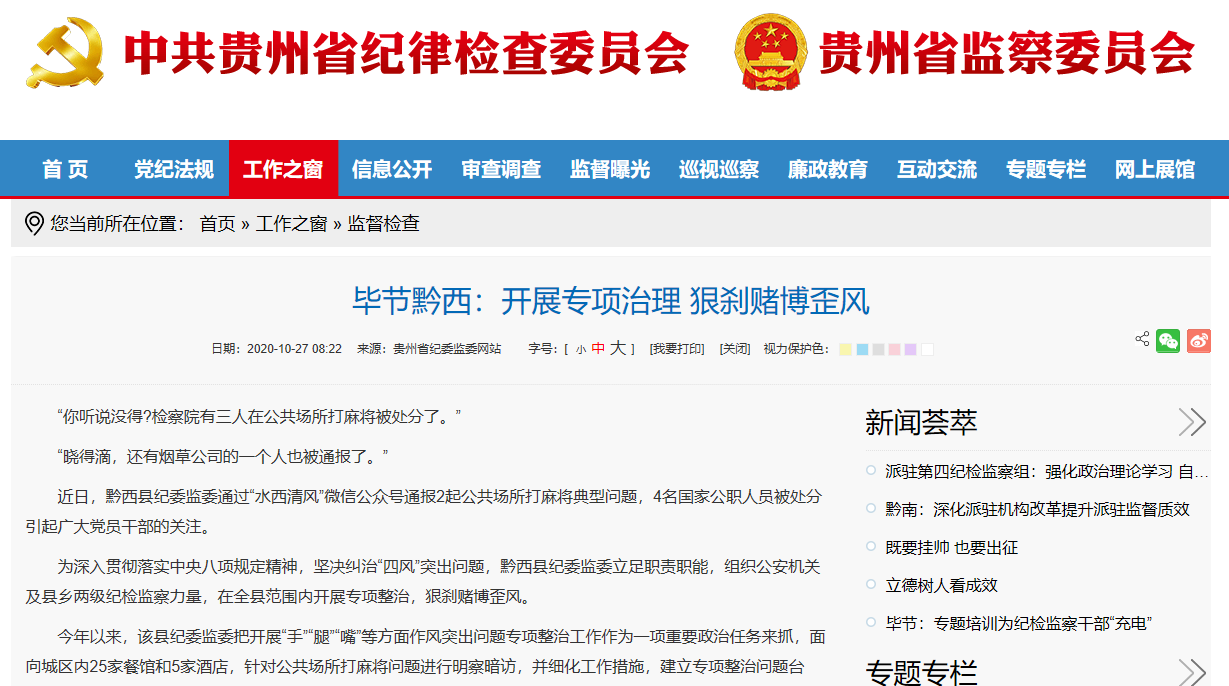 贵州省纪委监委网站:毕节黔西:开展专项治理 狠刹赌博歪风