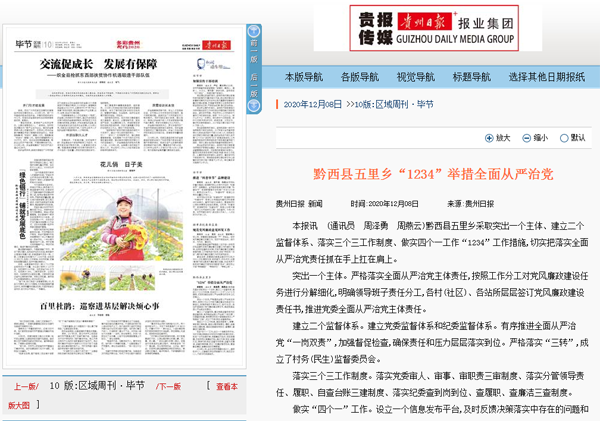 贵州日报:黔西县五里乡“1234”举措全面从严治党