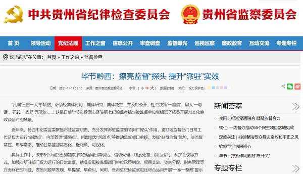 2021年11月11日贵州省纪委监委网站 工作之窗